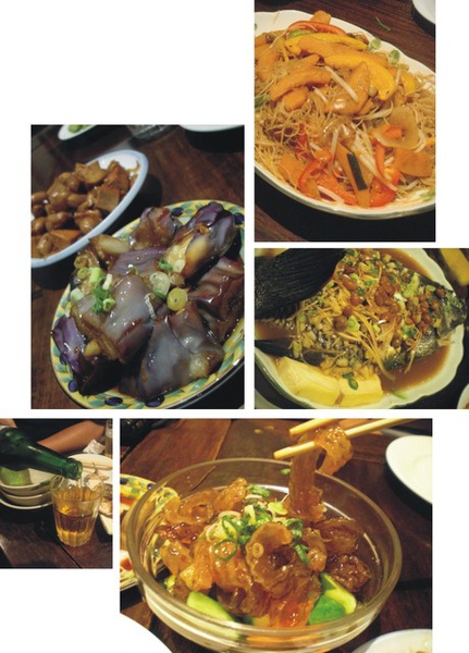 席間五年級的朋友果然一看到蔥香豬油飯和干貝肉燥飯就眼睛一亮,兀自大口扒飯話也不說。今天的涼拌魚皮和一年前吃到的味道似乎不太相同,但一樣是Q彈驚豔的美味。清蒸海鯽、午魚一夜干、炒春韮、薄片蹄膀、南瓜炒米粉、菜瓜蚵仔麵線…一定要搭最合味的上青台啤。