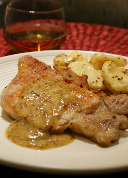 週日晚上弟弟在家吃飯,一時興起煎豬排孝敬他。食譜是奈潔拉的版本,再胡亂依我的味覺稍改過,並加了點蜂蜜平衡醬汁的酸度。沒有馬鈴薯,冰箱裡也沒cheeze,做不成義式Gnochi,就用手邊現有材料瞎攪和,間雜著路過的媽在一旁嚷嚷指使麵團的軟硬度,第一次試做的簡易版麵疙瘩居然也彈性十足,只能感謝灶神有保庇。 蘋果蜂蜜芥茉豬排 - - - - - - - -- - - -- - - - - - - - - - - - - - - - - 蒜 適量 (其實改成洋蔥也許更好) 豬排 約400g CIDER(蘋果酒) 125ml 鮮奶油 70ml 法式芥苿籽醬 1大匙 蜂蜜 1大匙 胡椒、鹽 適量 麵疙瘩 適量 - - - - - - - -- - - -- - - - - - - - - - - - - - - - - 1. 豬排拍薄,加一點胡椒和鹽調味,熱油鍋爆香蒜片,豬排入鍋,中火每面約煎45分鐘(依大小而訂)至熟即可起鍋。 (建議一開始就別放太多油,以免到時餘油太多做出來的醬會太膩,此時剩約1大匙的量較剛好) 2. 煎豬排的鍋中加入CIDER,讓它起泡滾沸一會兒,徐徐加入鮮奶油,並快速攪拌,如果不使用鐵弗龍不沾鍋的話,用攪拌器最容易和勻。 3. 加入芥茉醬、蜂蜜,攪拌煮至湯汁收乾濃稠,淋在豬排上。 4. 麵疙瘩,用義式、中式、日式都好,大鍋中加鹽燒滾後放入麵疙瘩,煮至浮出水面即可起鍋。裏上剛才剩餘的醬汁,配豬排吃。 本日麵疙瘩 - - - - - - - -- - - -- - - - 麵粉 180g 太白粉 60g 蛋 1顆 水 120m l - - - - - - - -- - - -- - - - 1. 麵粉、蛋、水三樣一起和勻。以上是大約值,麵糰約是微微沾手的呈度,如果太濕就再多加些麵粉。 2. 桌上撒麵粉防沾,雙手也抓一把麵粉再輕拍掉,捏一球麵團輕滾搓揉成楕圓形,用指頭從中心壓一下,下鍋。